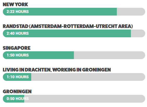 Average commuting time per day by location, for comparison: